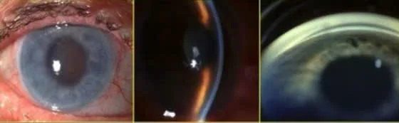 - Có dấu hiệu kéo giãn cực sau hoặc phình củng mạc sau không